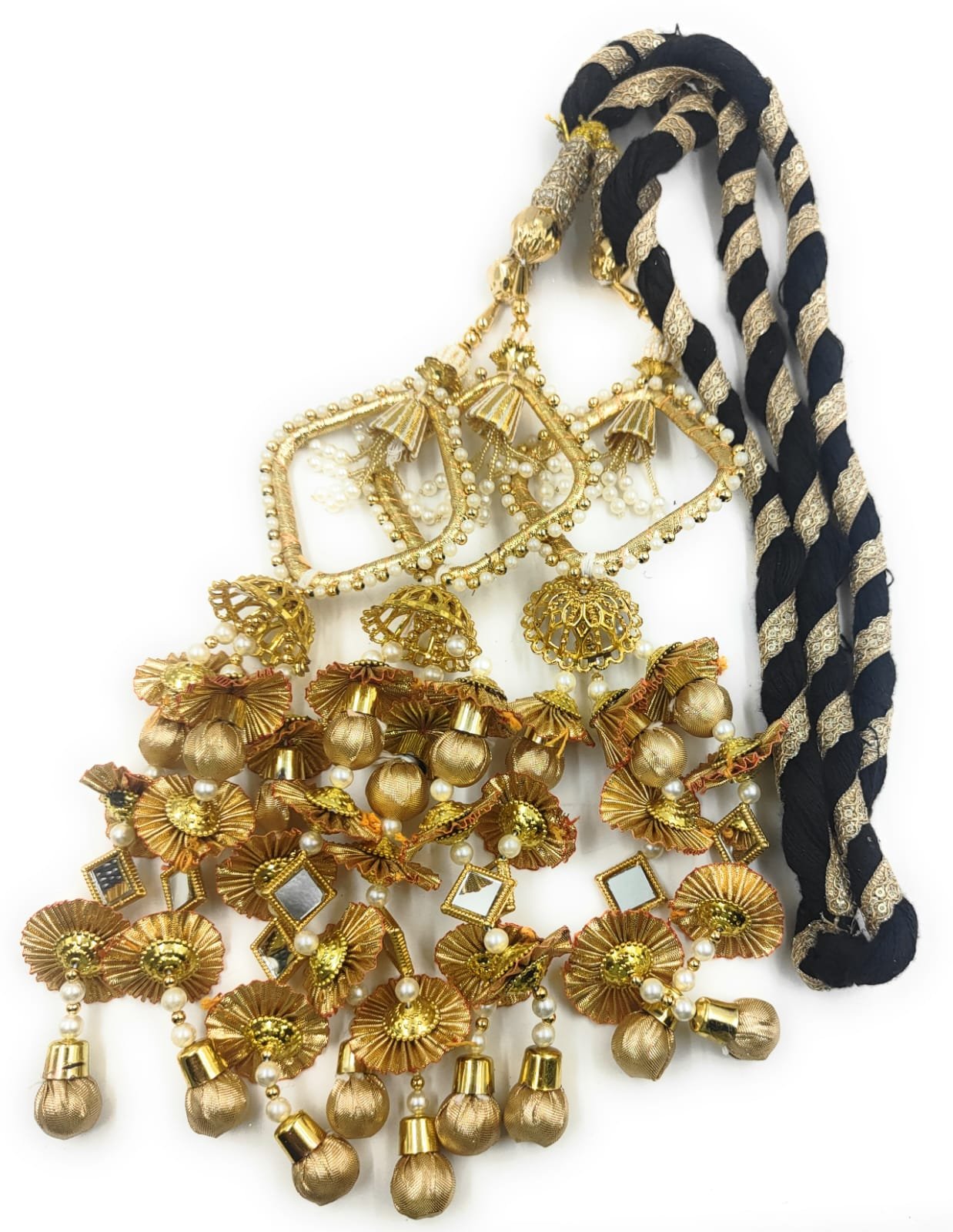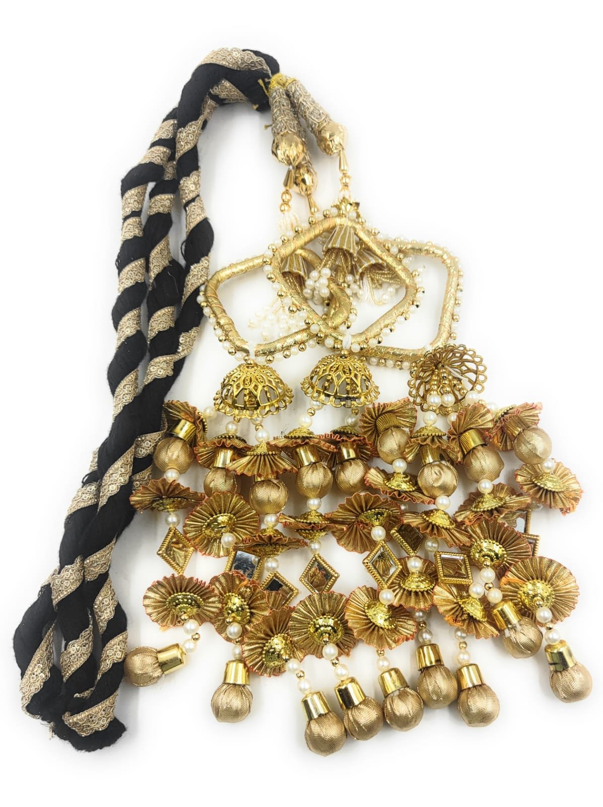 Perfect as a bridal accessory or a gift for special occasions, this paranda symbolizes prosperity, grace, and the timeless charm of Indian heritage. Whether you’re a bride, bridesmaid, or simply attending a festive celebration, the SIMKA® Mirror & Moti Paranda ensures you stand out with elegance and poise.