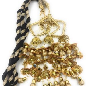 Add a touch of royal elegance to your bridal look with the SIMKA® Light Weight Hand Made Mirror & Moti Heavy Design Bridal Paranda with Gotapatti Lace — a perfect blend of traditional craftsmanship and modern sophistication. This exquisite hair accessory is designed for brides and women who love to embrace their cultural roots while showcasing timeless beauty.